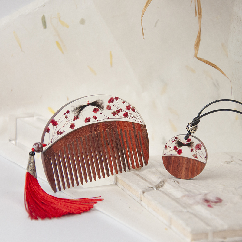 Square thing fetal hair commemorative handmade original baby creative gift baby fetus hair wedding comb sandalwood resin comb