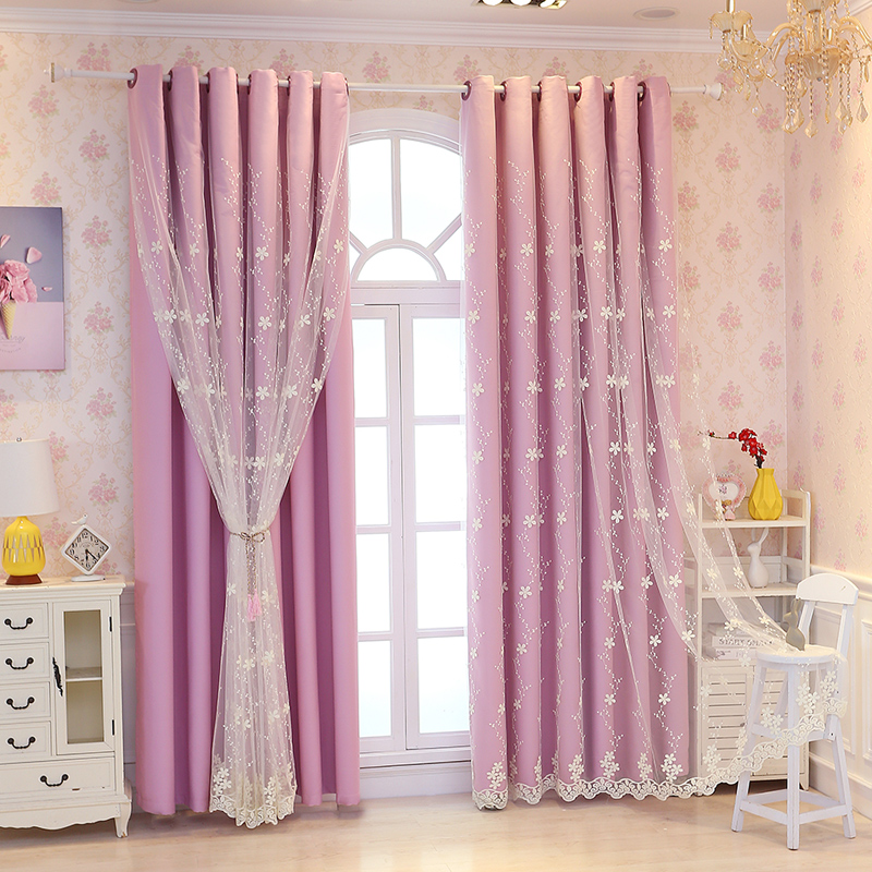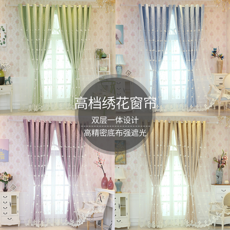 Net Red Princess Shake-Up Double Layer Curtains Bedroom Teenage Girl Little Fresher Cozy Korean Girl Lighttight Finished Embroidered