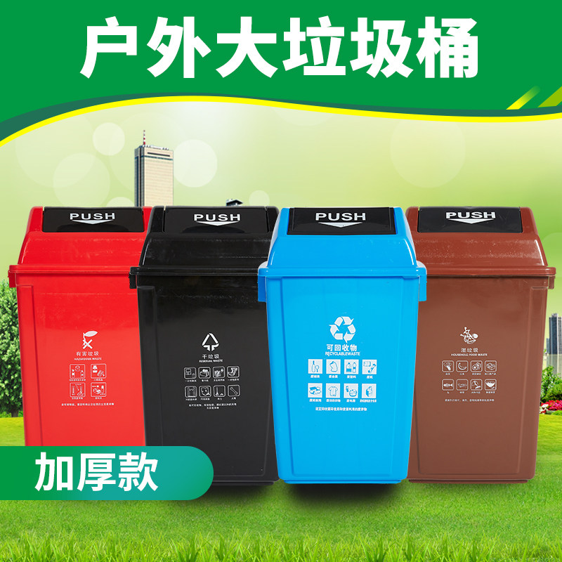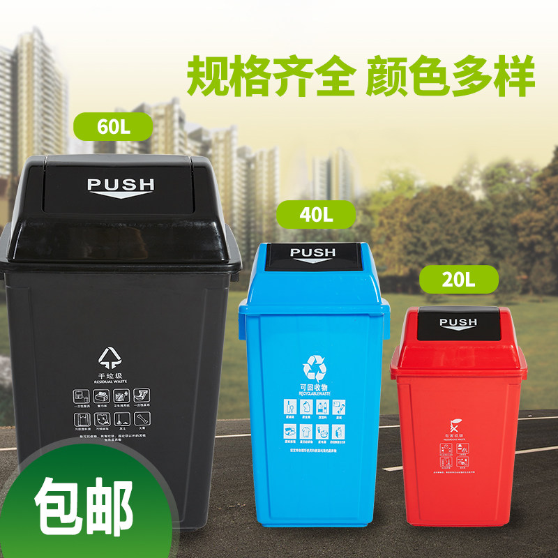 Bin 30L40 liter 60 liters dry wet recyclables Bucket Plastic Shake Lid Style Barrel School Unit Junk Outdoor-Taobao