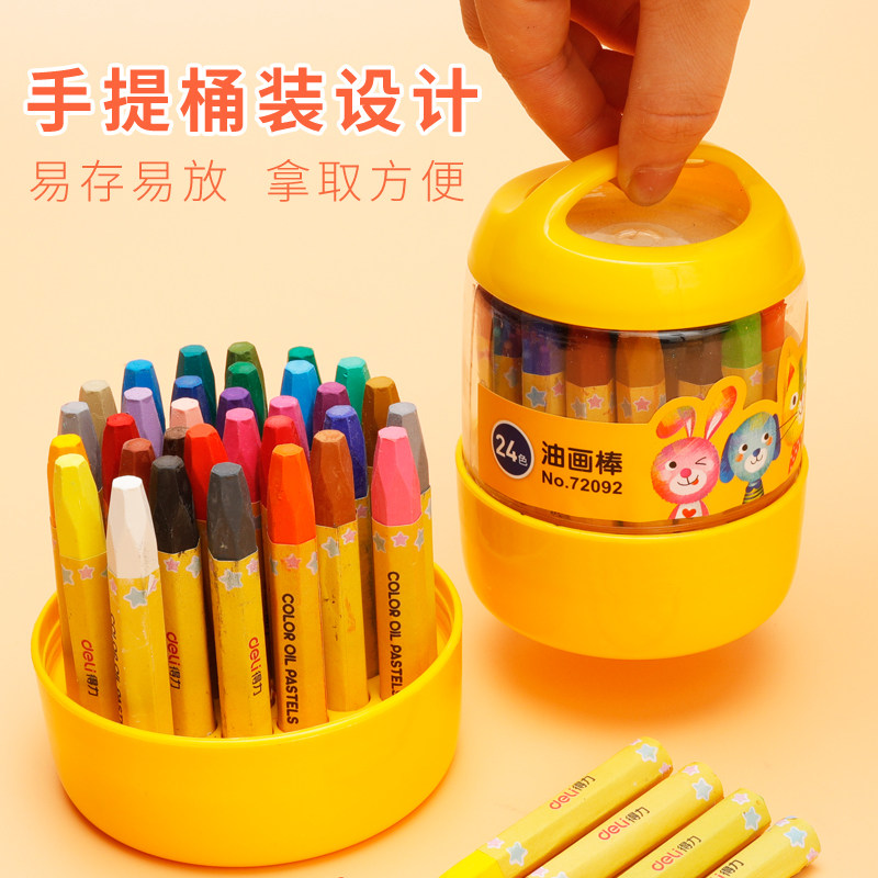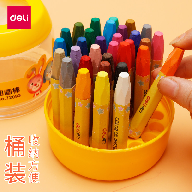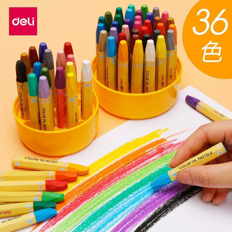 Deli oil painting stick Children's color crayon set 24 colors Kindergarten safe non-toxic washable baby brush Children's graffiti Elementary school students painting colorful stick coloring pen Color pen 36 color barrel