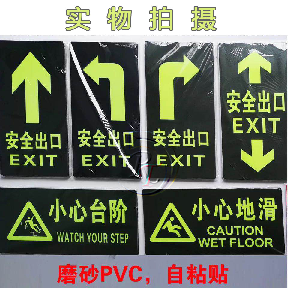 Safety exit floor sticker abrasion-proof signs Nightlight Wall Patch Fluorescent Spontaneous Light Caution Steps Ground Slip Stairway Landmark Arrowhead Tips Warning Signs Fire Emergency Emergency Signs Cards