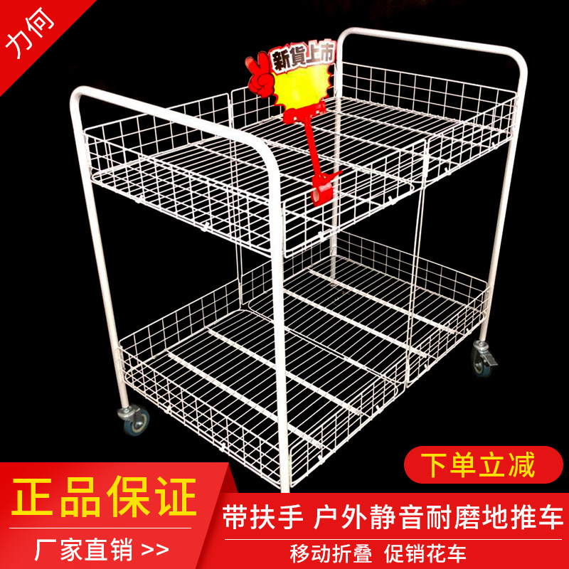 Three-layer promotional float folding snack mobile cart ground stand shelf processing dumping table mobile outdoor mute