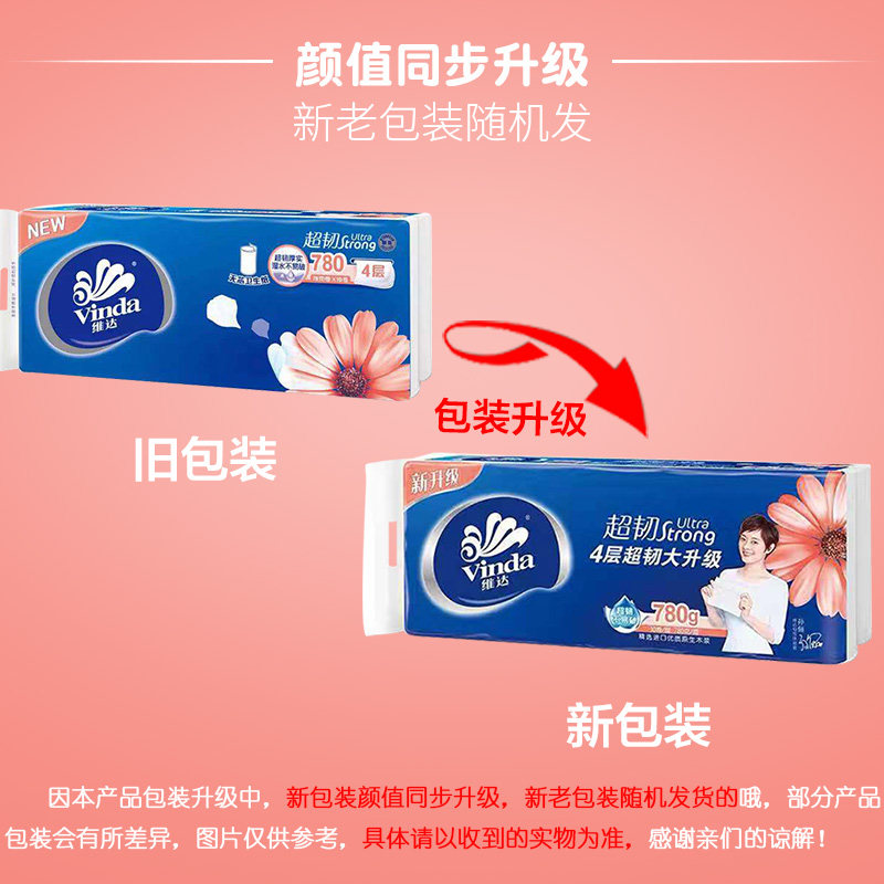 Vida roll paper coreless toilet paper towel 780g4 layers 30 rolls ultra-tough toilet paper household family pack affordable pack