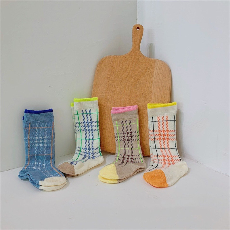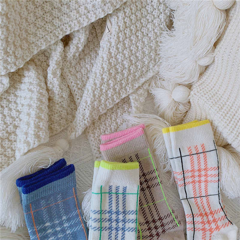 Autumn and winter new Korean version of children's socks contrast plaid children's socks