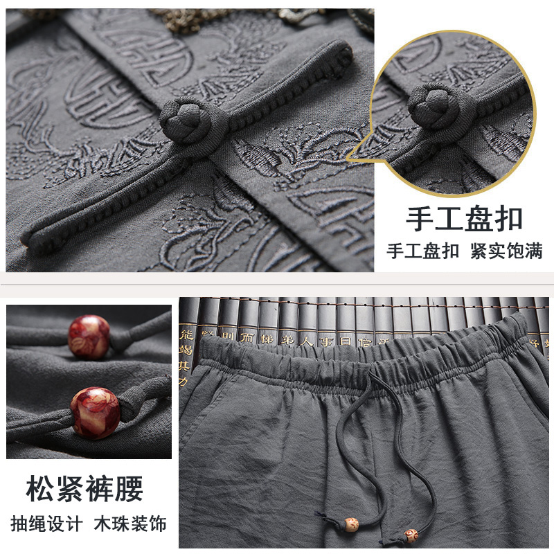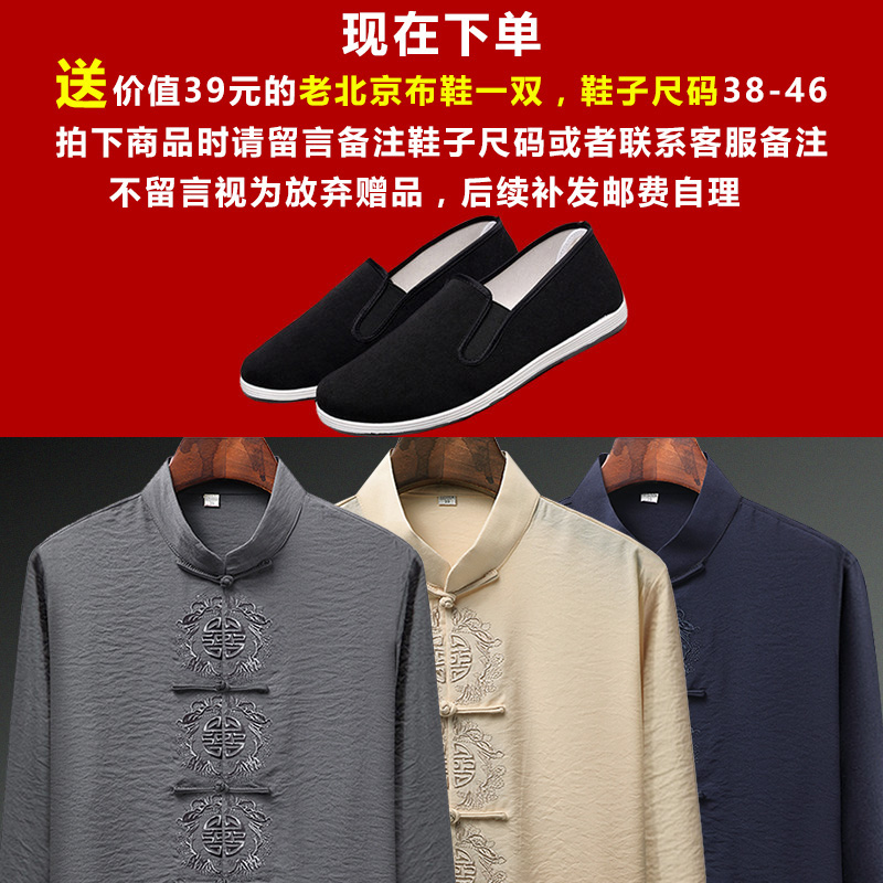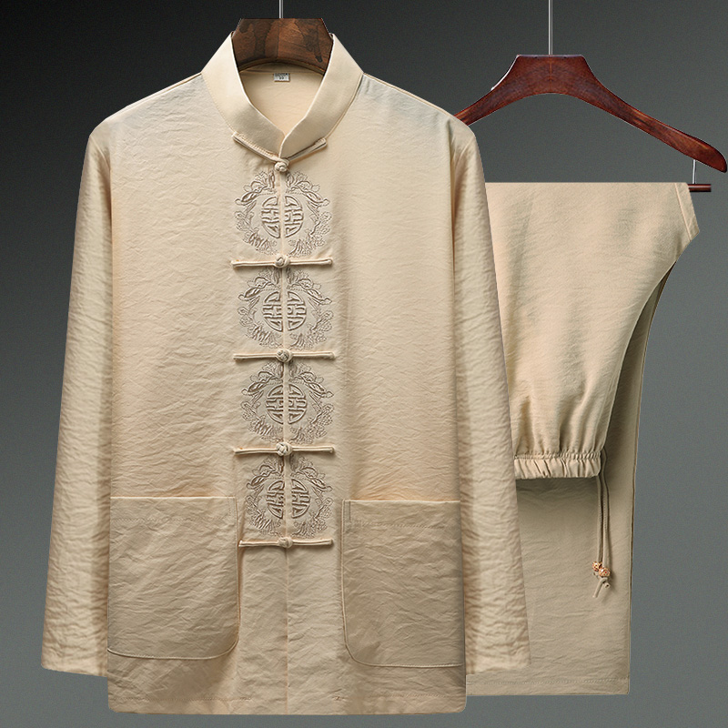 Spring and Autumn Middle-aged Tang suit men cotton and linen long-sleeved shirt old man grandfather suit Chinese style linen embroidery father suit