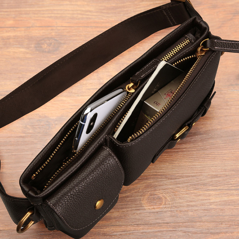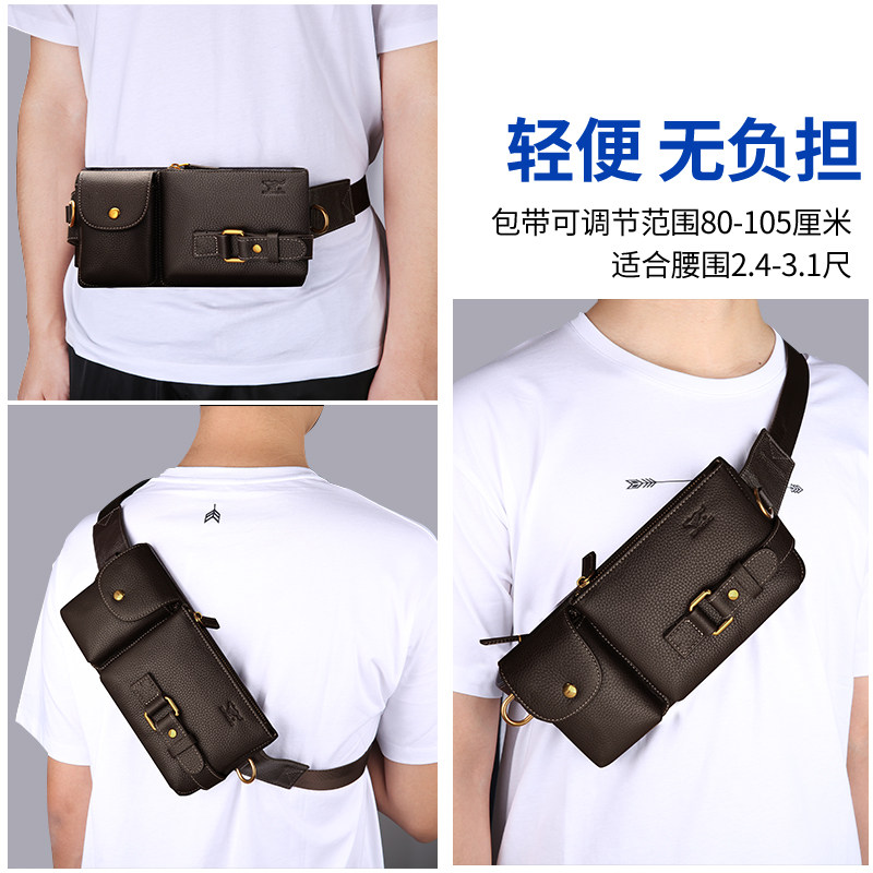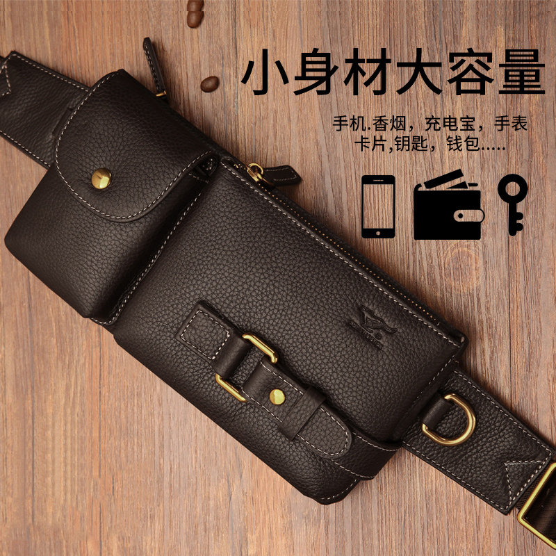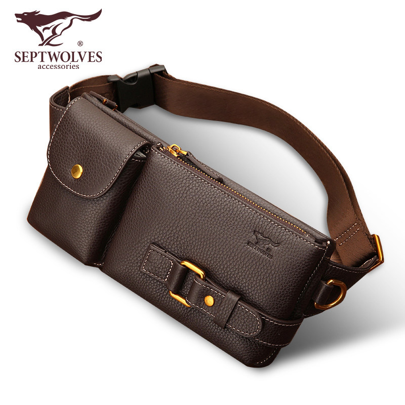 Seven wolves fanny pack men's leather men's bag men's chest bag crossbody bag Cowhide mobile phone new multi-functional summer trumpet