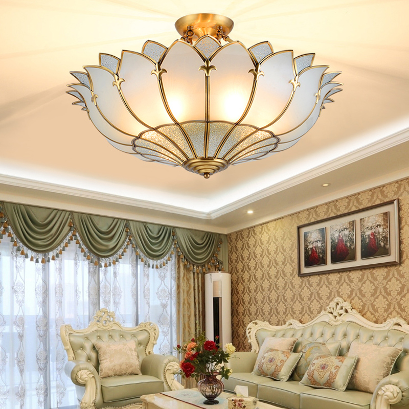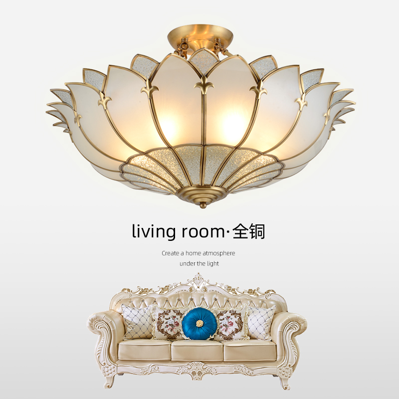 Eurostyle Living room suction ceiling lamp lotus crystal full copper lamp bedroom cozy romantic creative dining room Book room lamp LED light