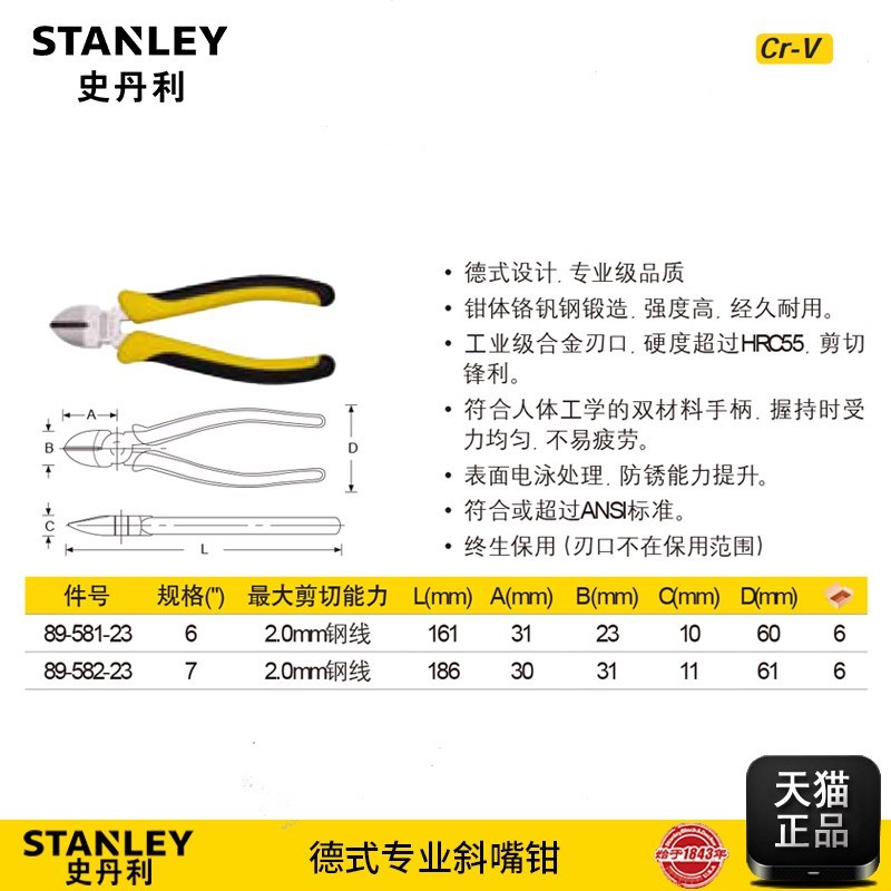 Stanley Tools German Professional Oblique Pliers 6 "7" Stanley Oblique Pliers 89-581 89-582-23