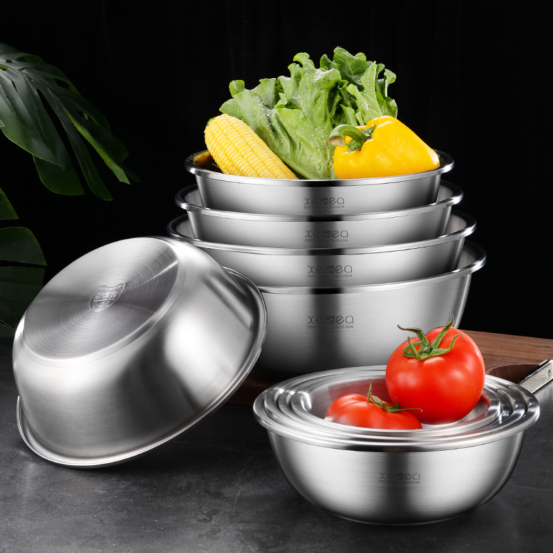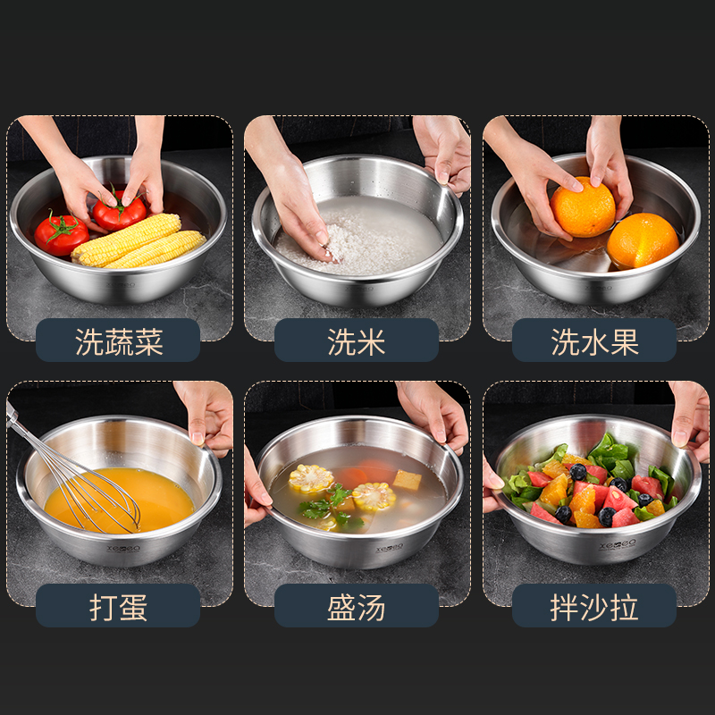 Happy poem 304 stainless steel seasoning basin thickened cuisine basin deepen the egg-basin washing basin drain basket soup bowl and face