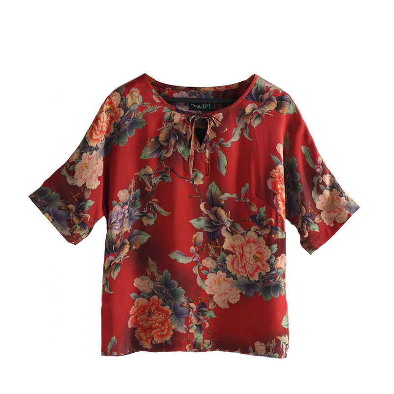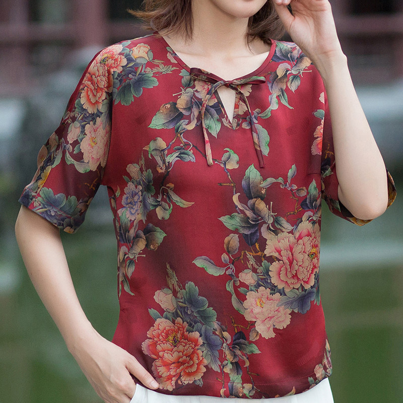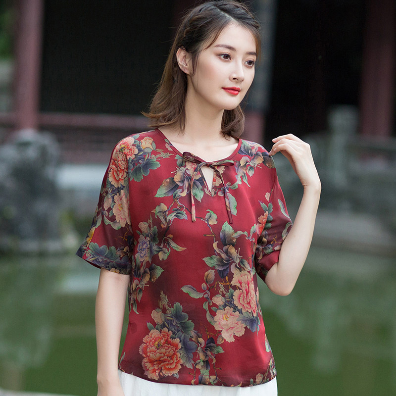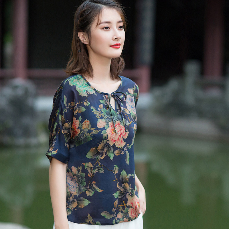 Autumn Water Ballad Original Caressing Cloud Temples Jacquard Satin Fragrant Cloud Yarn Improved Chinese Blouse Women's Shoulder Sleeves Loose cover