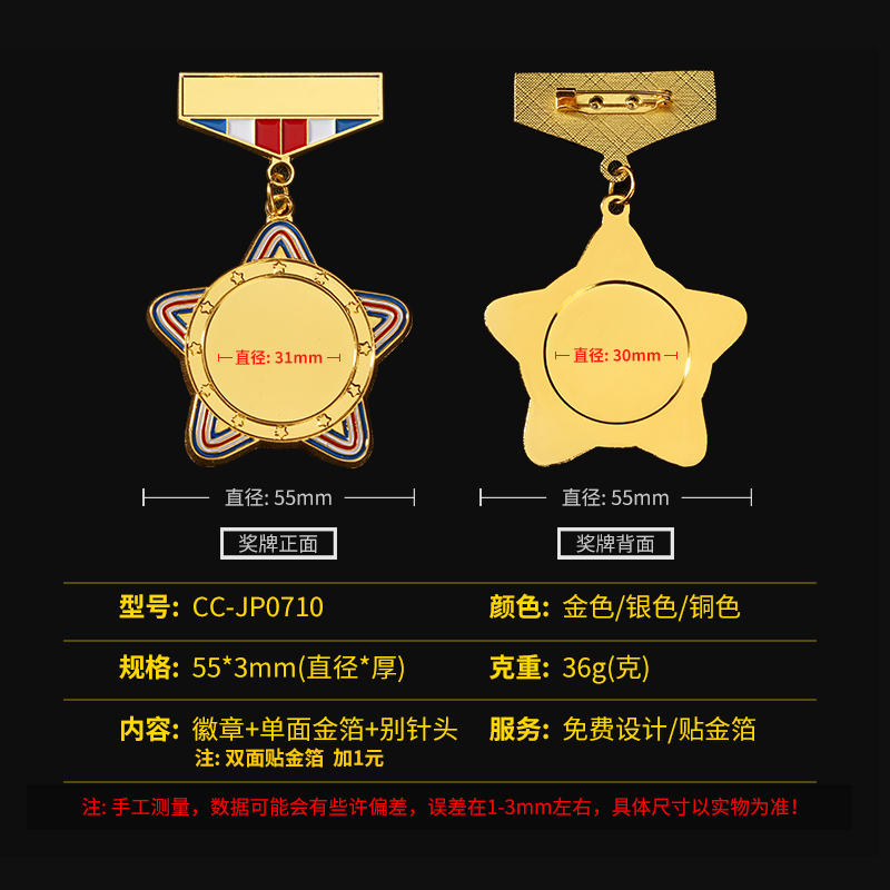 CC-JP0710 Gold Pentagram Badge CC-JP0710 Silver Pentagram Badge CC-JP0710 Bronze Pentagram Badge