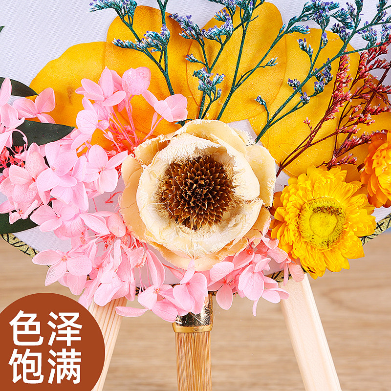 Ancient Wind Dry Flower Group Fan DIY Material Package 7 New Year's Eve Yongsheng Flower China Wind Hand Industry Fan Fan Group Construction Event Gift