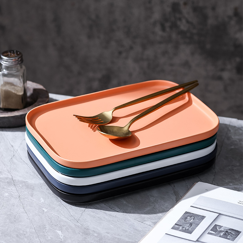 Matt 10 inch rectangular dish-white matt 10 inch rectangular dish-black matt 10-inch rectangular plate-deep sea blue matt 10 inch rectangular dish-retro green matt