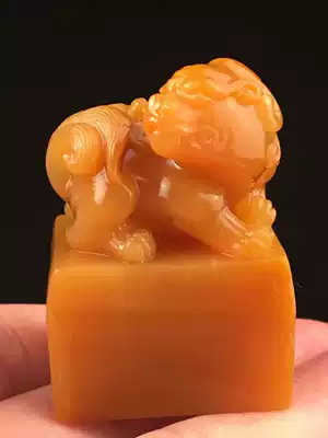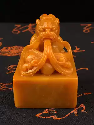 Laos Shitian Huangjingzhang Shoushan Tianhuang frozen stone ornaments Ruibeast Dragon Seal cutting Northern square chapter material customization