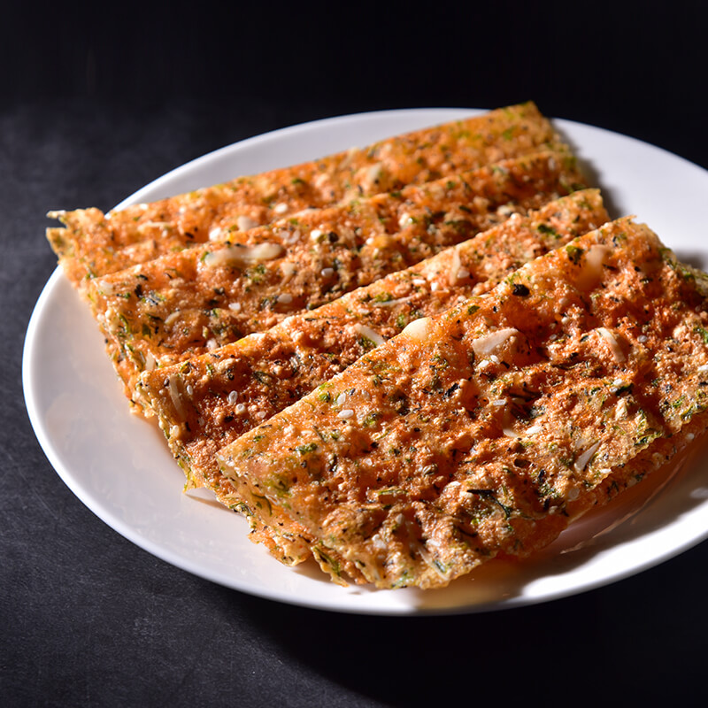 Pork, chicken, sugar, alpine (≥5%), soy protein isolate, sesame, seaweed, black tea, edible salt, etc