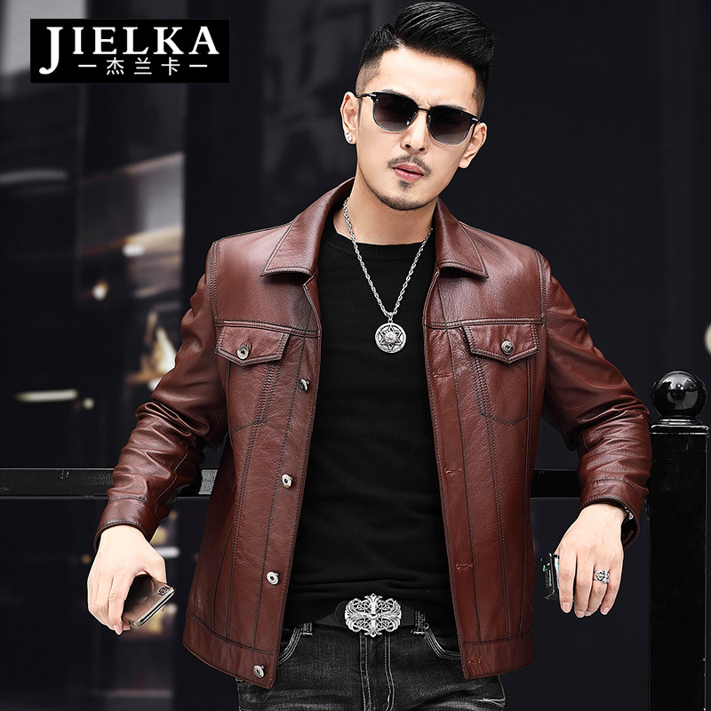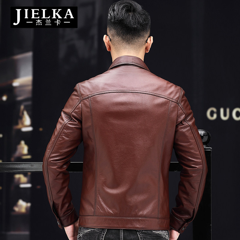 Henning Leather Jacket Man Genuine Leather Collar Leather Collar Leather Clothes Men Genuine Leather Youth Locomotive Clothing Trending Head Layer Bull Leather Jacket Tide