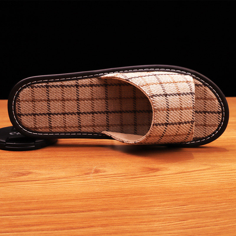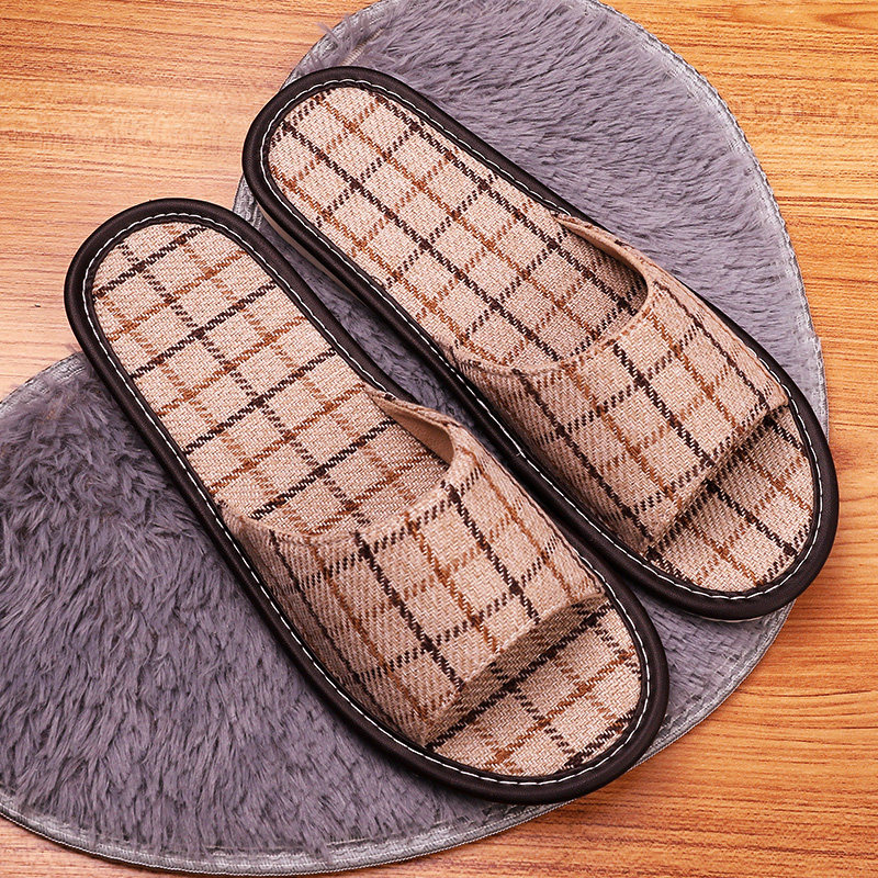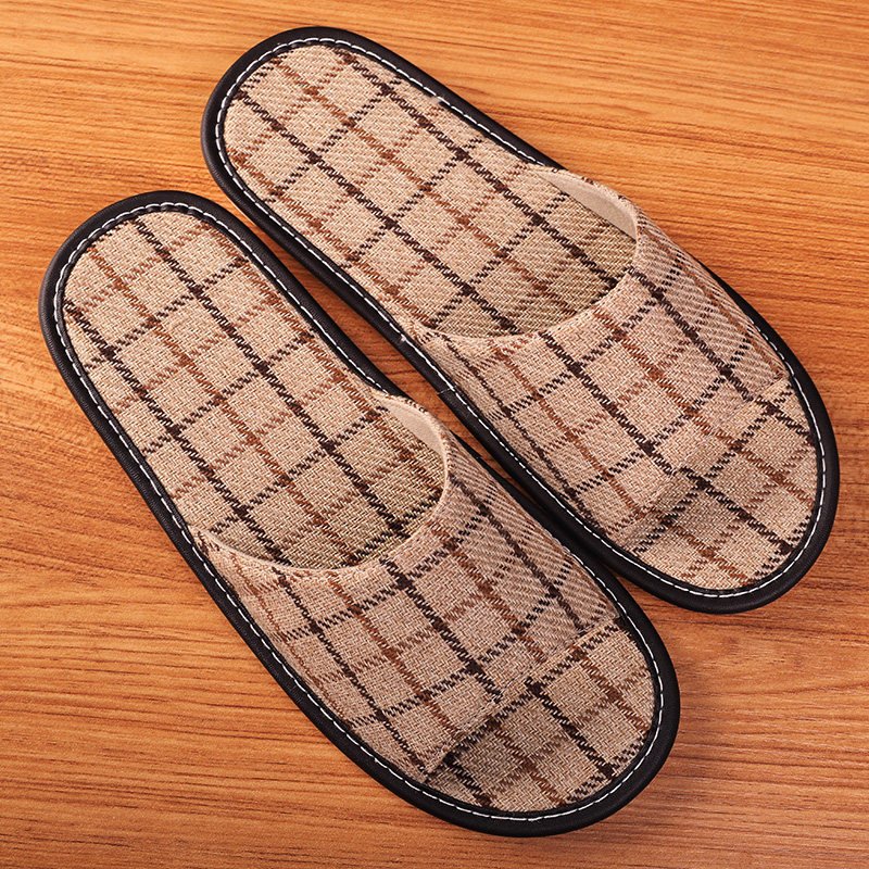 Summer plaid cotton linen slippers women's indoor home household non-slip soft bottom couple models linen fabric four seasons