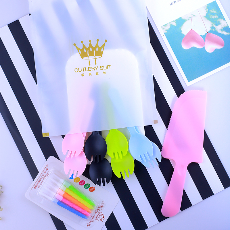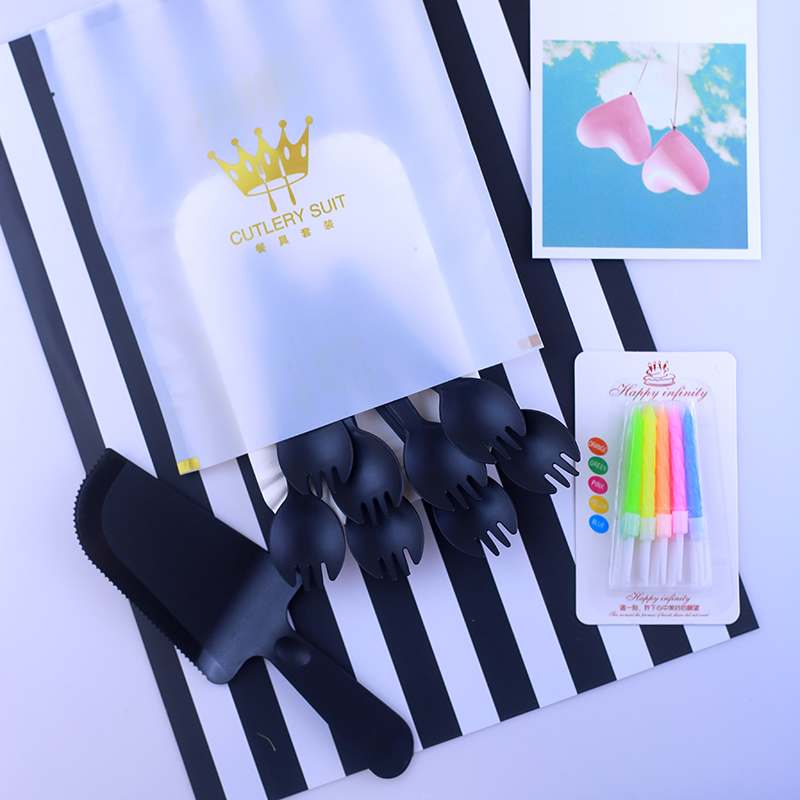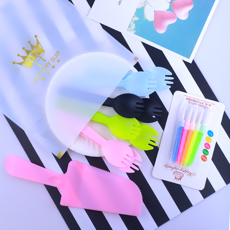 8 people birthday cake knife and fork disc disposable knife and fork candle plastic cutter and fork 100 sets