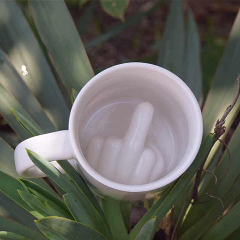 White Grip Punches Erect Middle Finger Tea Cup Mark Cup Creativity Uncivilized Fark Cup Prank for Ceramic Coffee Cup