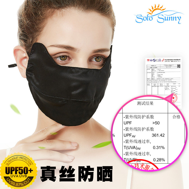 SoloSunny silk sunscreen mask female mulberry silk mask anti-UV thin summer outdoor breathable