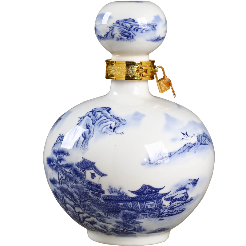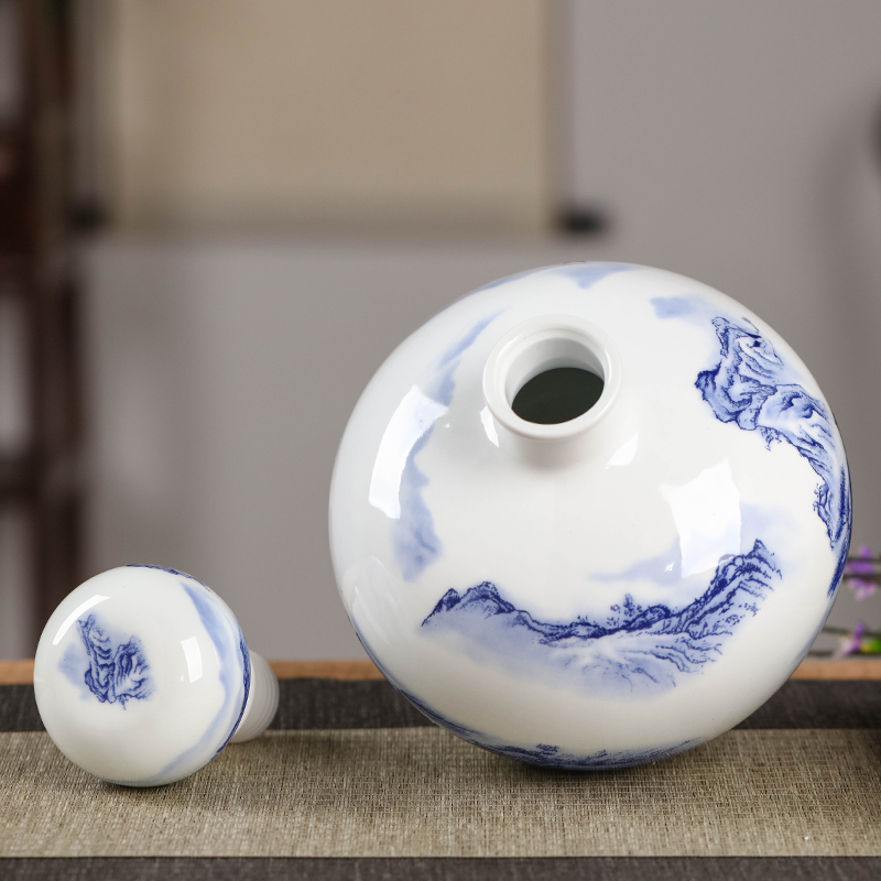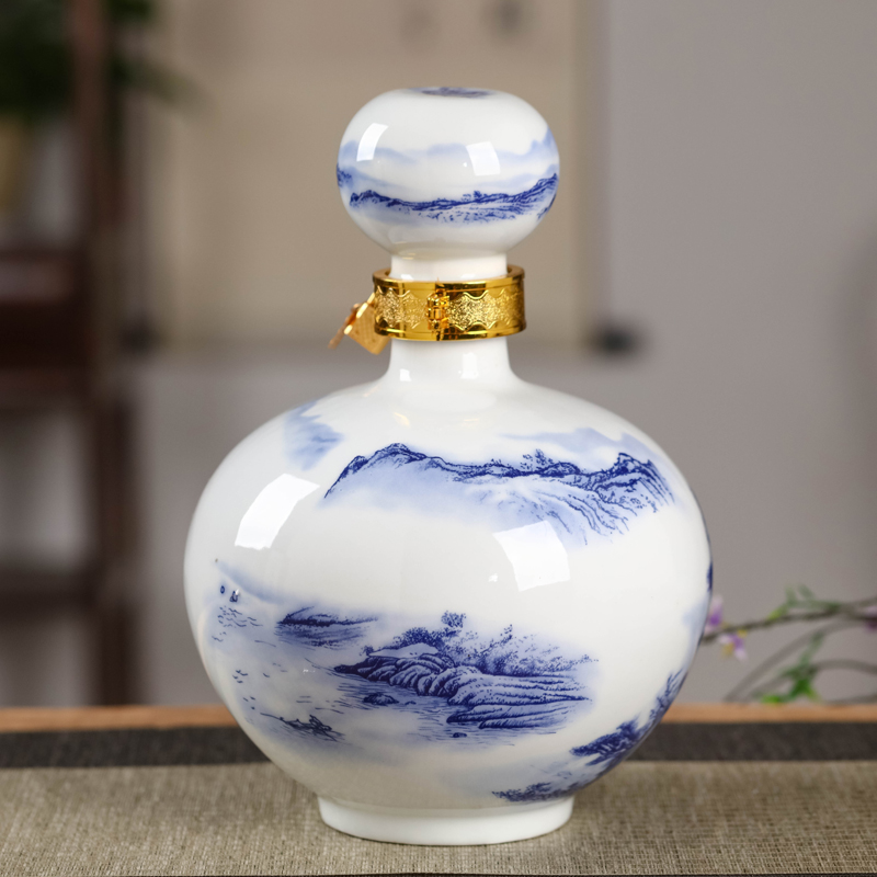 Blue and white porcelain landscape 5 catties ball (single bottle) Blue and white porcelain landscape 5 catties ball gift box 5 catties Phoenix flat bottle (single bottle) 5 catties Phoenix flat bottle (with gift box)