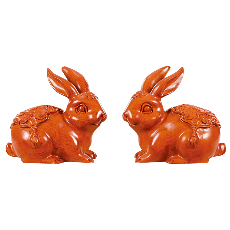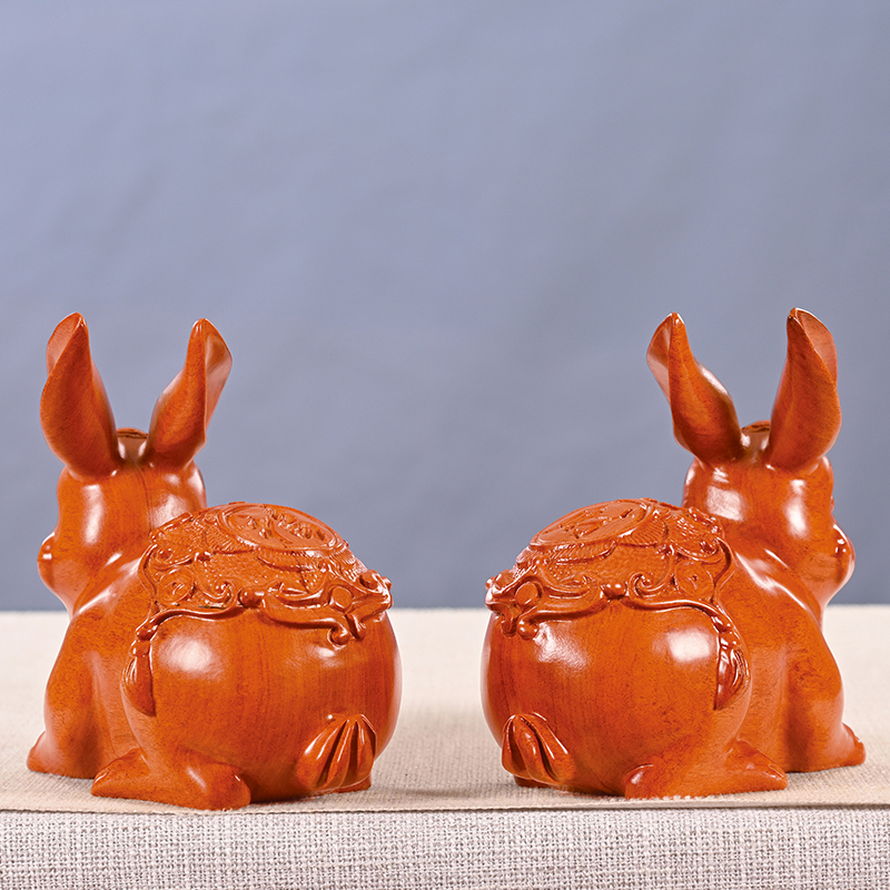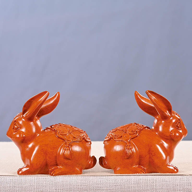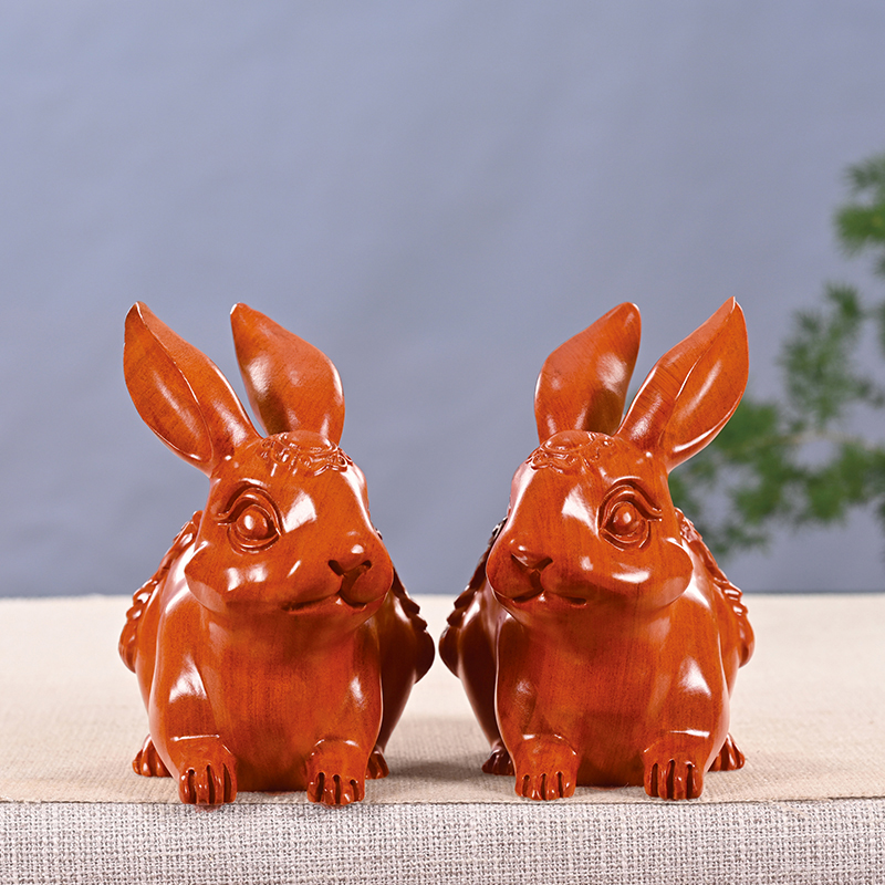 Wood Carving Rabbit Zodiac Creative Craft Gifts Swing Accessories Rabbit Bedroom Desktop Home Solid Wood Living Room Genguan Art Decoration Swing