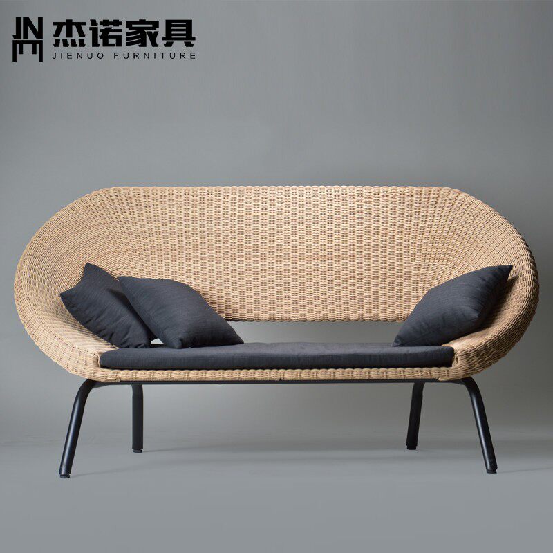 Rattan chair sofa coffee table three-piece combination outdoor rattan small sofa living room courtyard outdoor rattan garden furniture