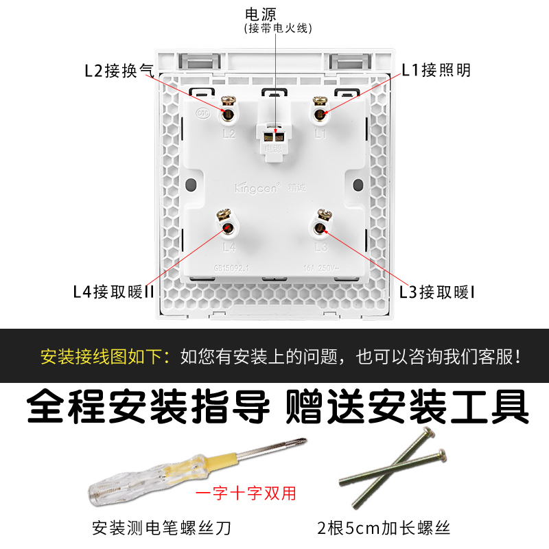 Bath master four-on-one switch Household universal waterproof panel Bathroom integrated ceiling heating four-in-one switch