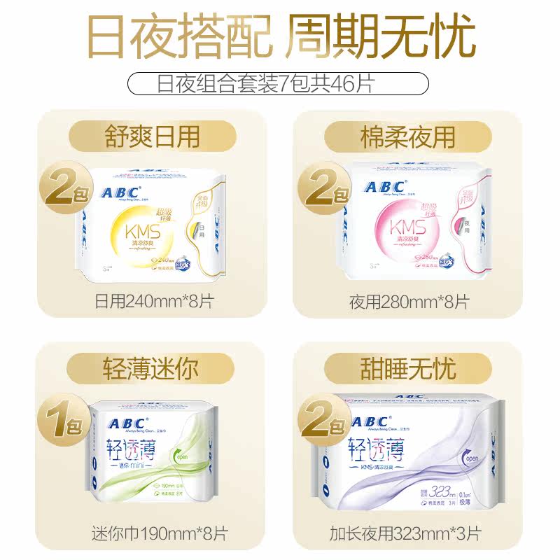 ABC sanitary cotton women's daily night combination breathable mini skin-friendly cotton soft aunt towel day and night mixed pack