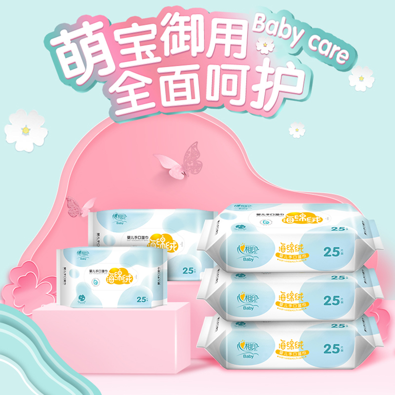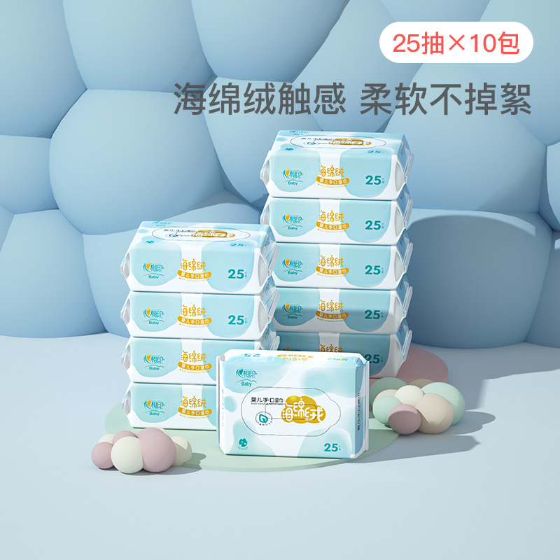 Xinxiangyin baby wet wipes sponge velvet soft travel carry-on wipe face pp baby wet wipes 25 pumps x 10 packs