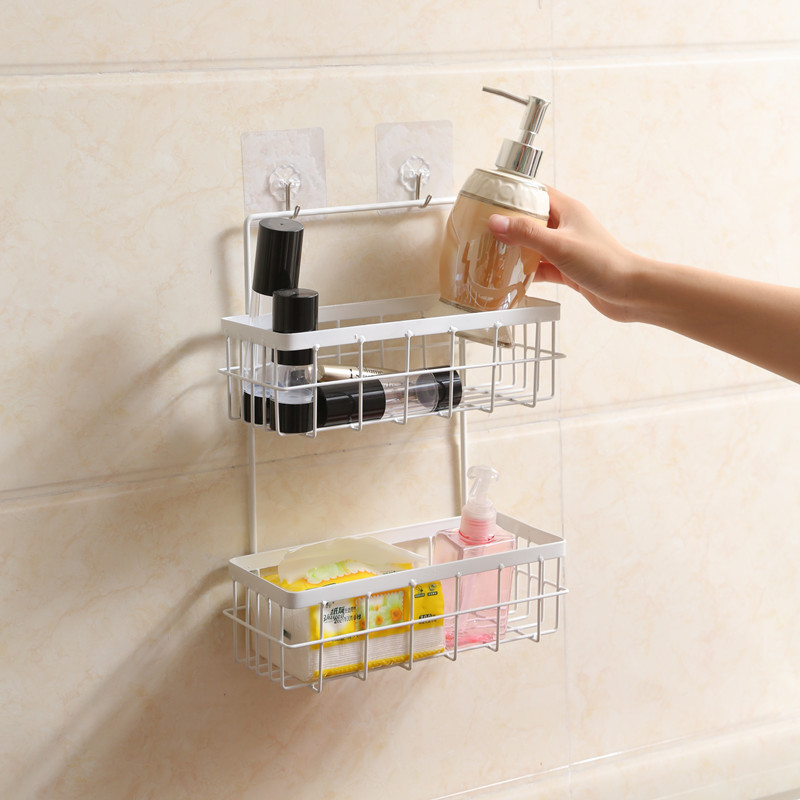 Punch-free wall shelf Bed head Bedroom wall hanging basket Kitchen powder room Dormitory double ins storage shelf