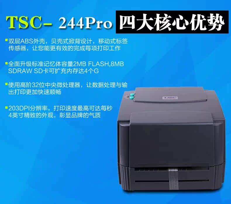 TSC-244PRO barcode printer label printer thermal carbon belt clothing tag sticker washing label