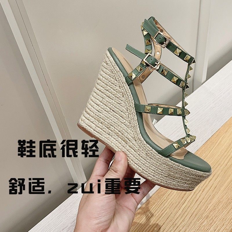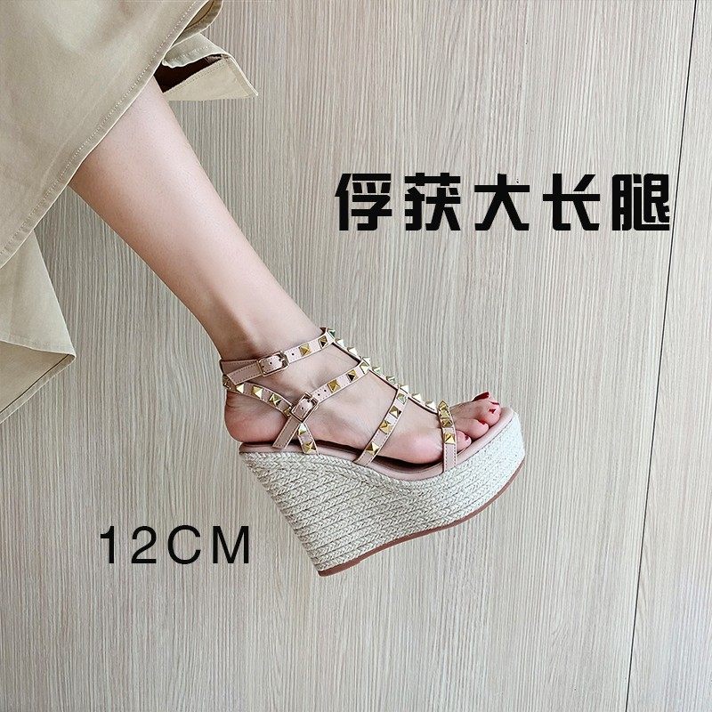 Wedge sandals 2022 new summer waterproof platform fairy style thick bottom rivets high-heeled sponge cake with Roman height