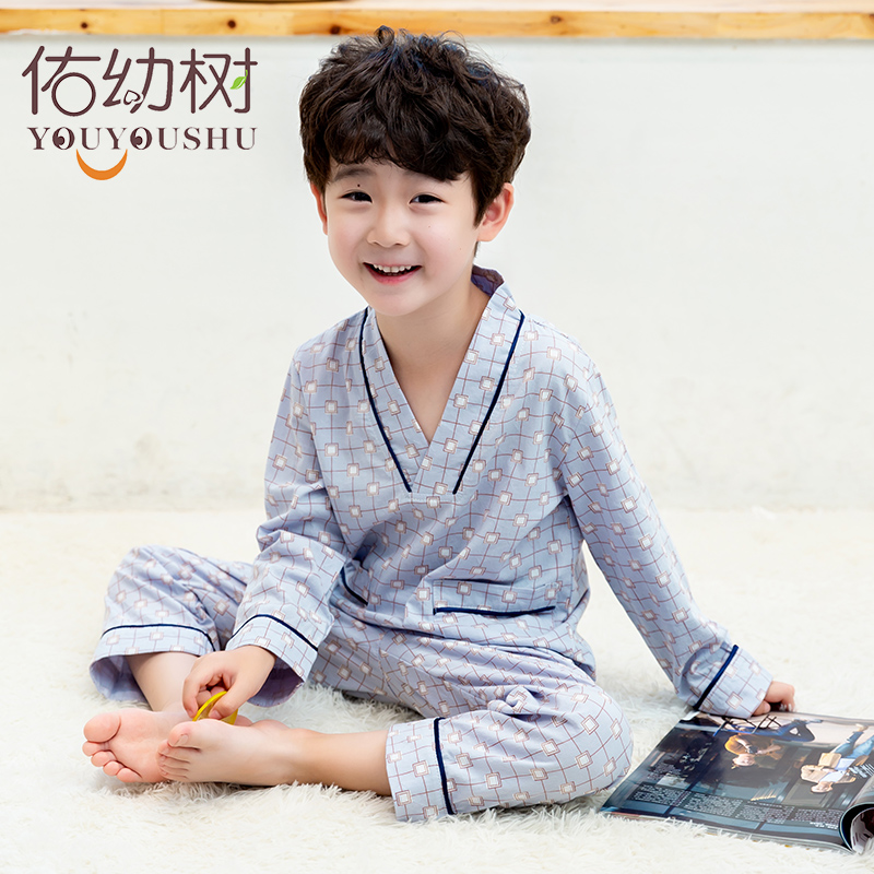 Boys ' home clothes Spring and autumn baby cotton pajamas Autumn children's foreign school long-sleeved trousers suit Korean version of air conditioning clothes