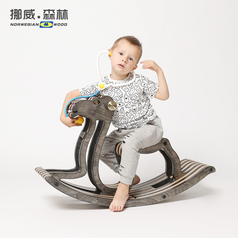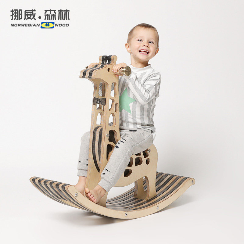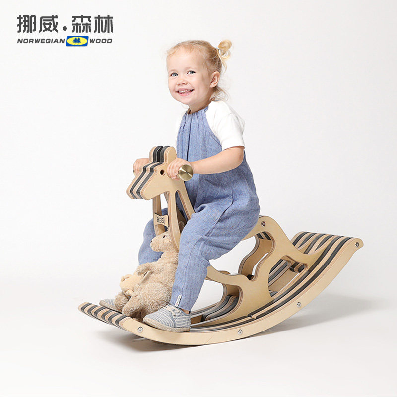 Nordic solid wood children's rocking horse kangaroo bionic wooden toy rocking chair wooden gift rocking car baby Trojan horse