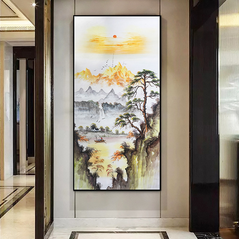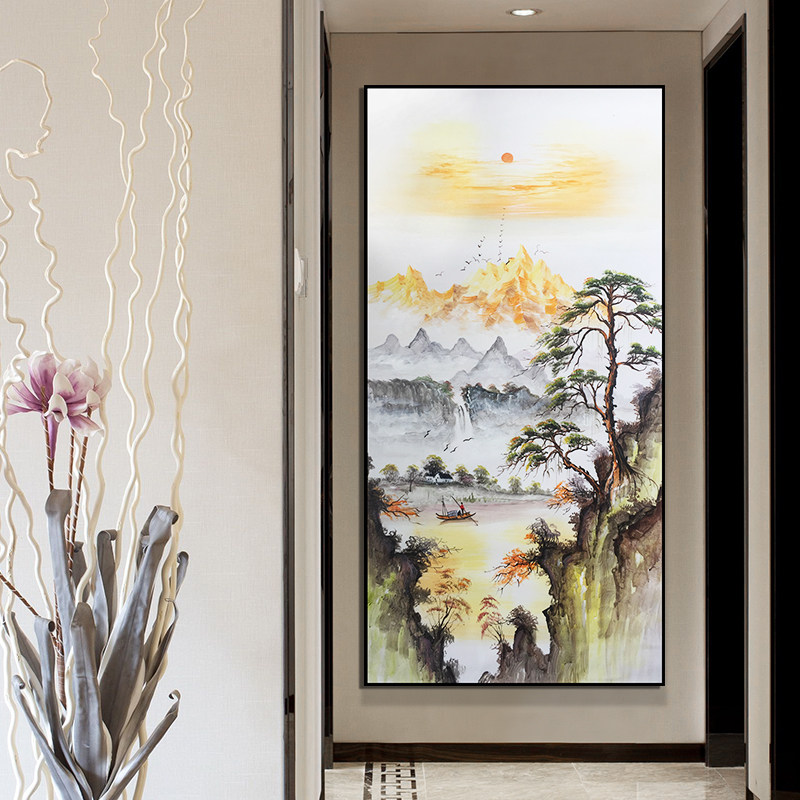 Hand-painted oil painting new Chinese style landscape porch corridor office decoration painting hanging painting vertical mural painting sun and mountains