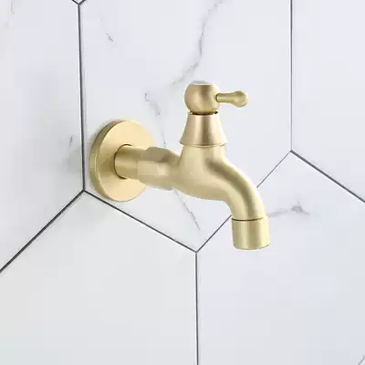 Nordic light luxury brushed gold brass washing machine faucet Golden single cold small faucet full copper valve body into the wall faucet