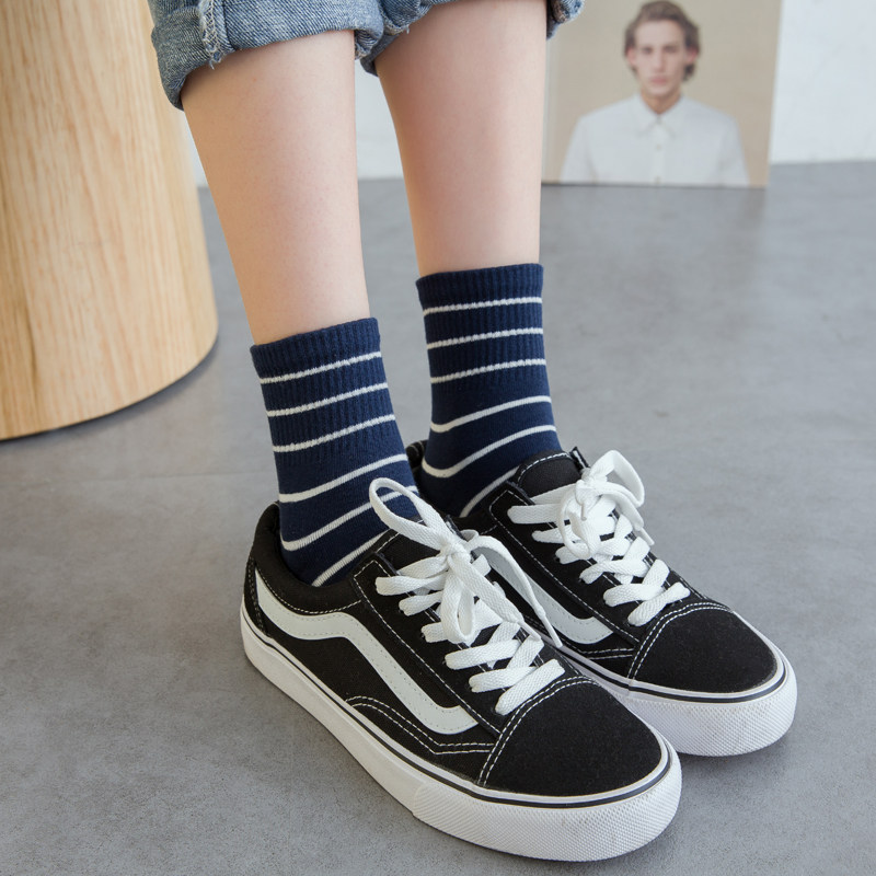 Medium Socks-Six-color Striped Combination-Six-pack Medium Socks-Six-color Striped Black-Six-pack Medium Socks-Six-color Striped Navy Blue-Six-pack Medium Socks-Six-color Striped Pink-Six-pack Medium Socks-