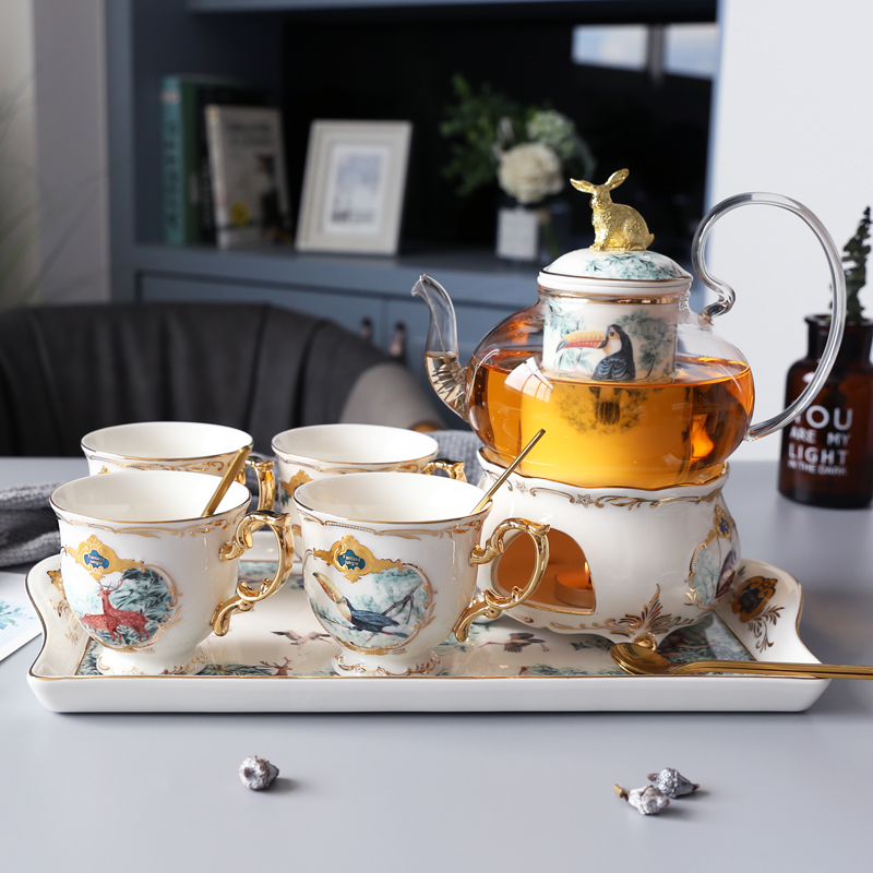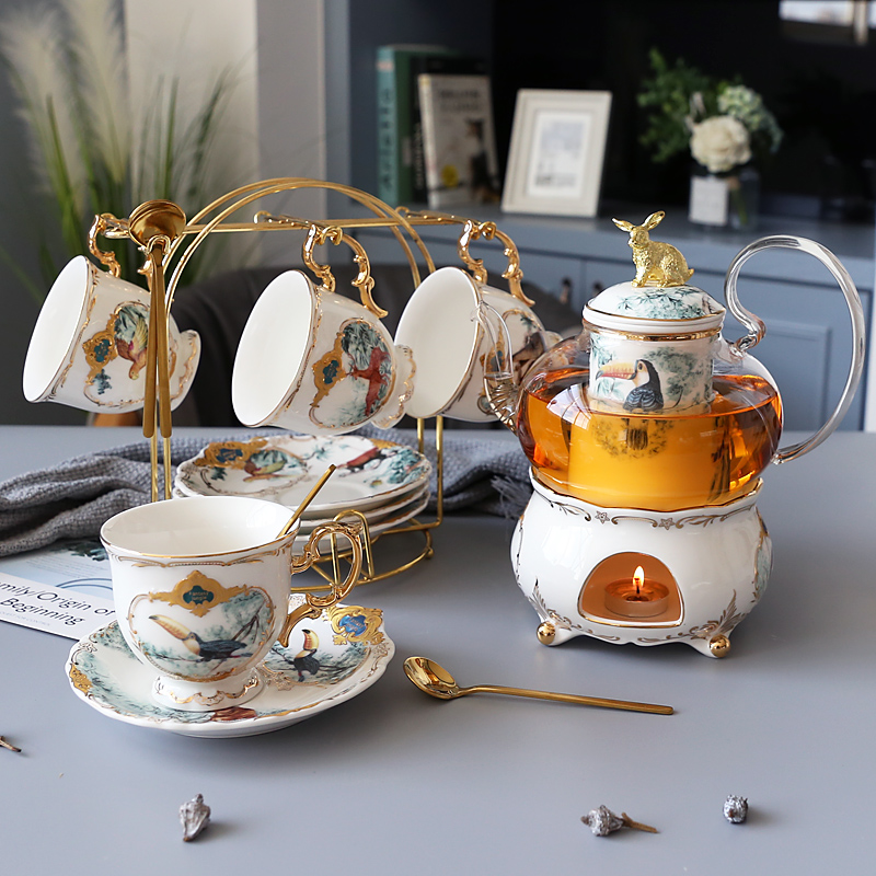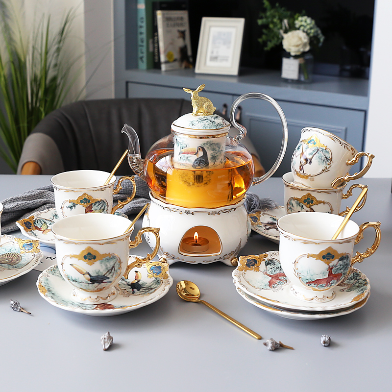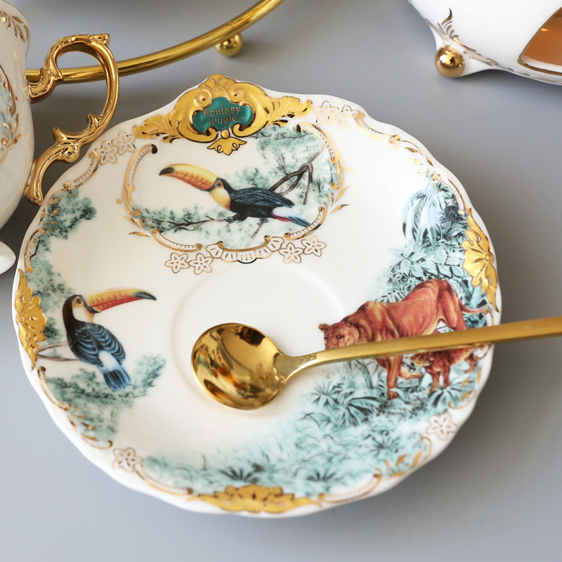 Fantasy Jungle 1 Pot 1 warm tea ware 6 cups 6 Plates 6 spoons 1 cup holder Fantasy jungle 1 Pot 1 tea ware 6 cups 6 Plates 6 spoons 1 bird stand fantasy jungle 1 Pot 1 warm tea ware 6 cups 6 disc 6 spoons 1 alloy high