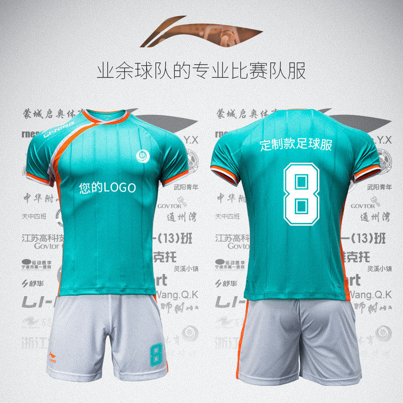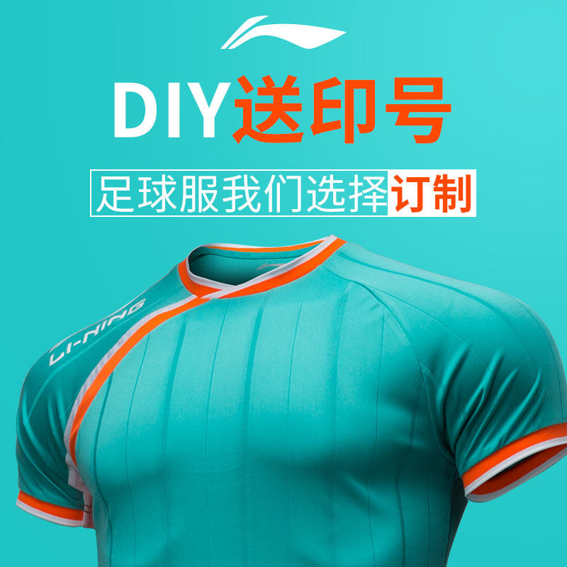 Li Ning Football Clothes Men and Women Competition Breakthrough Team Print Mark Competition Short Sleeve Set Customization