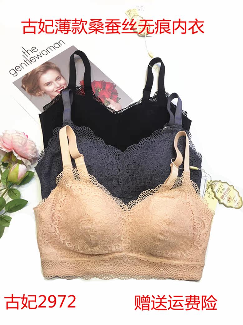 Gu Fei 2972 thin section mulberry silk seamless gathered lace sleep maintenance bra big breasts show small no steel ring bra