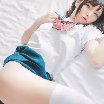 Red bow tie short sleeve skirt White Japanese knee socks red bow tie short sleeve skirt black Japanese knee socks