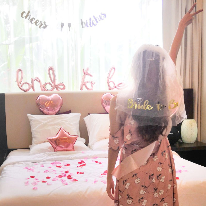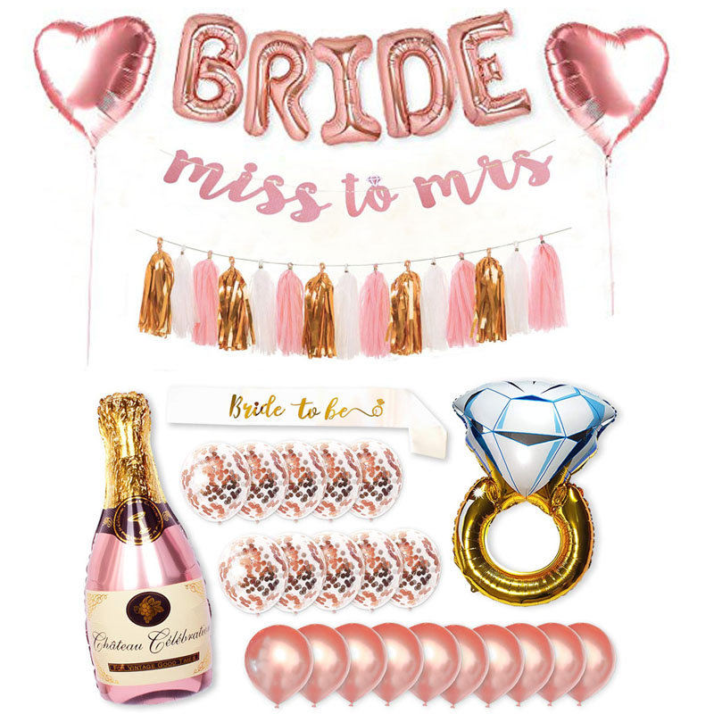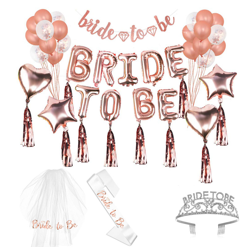 Nuptial Bachelor Party Sisters Group Pie pair of arranged bridetto Be Alphabet Balloons Decorated Rose Gold Balloons
