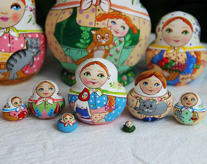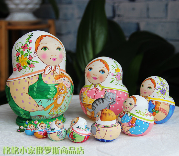Matryoshka 10-layer children's toy Basswood watercolor hand painted tasteless children's birthday gift