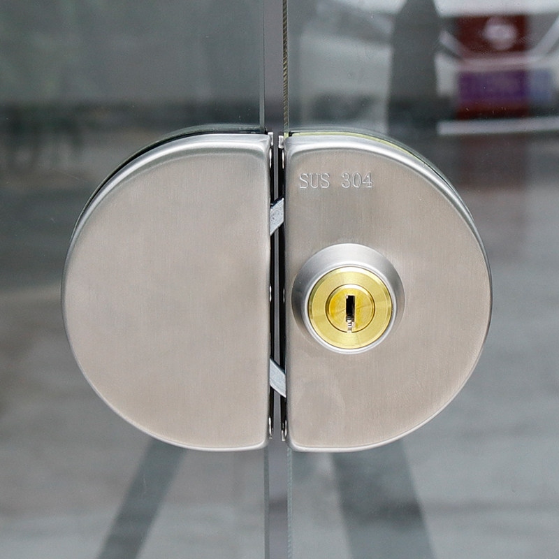 304 stainless steel glass door lock free of bore single double door sliding door with frame-free door shop door pair with double switch