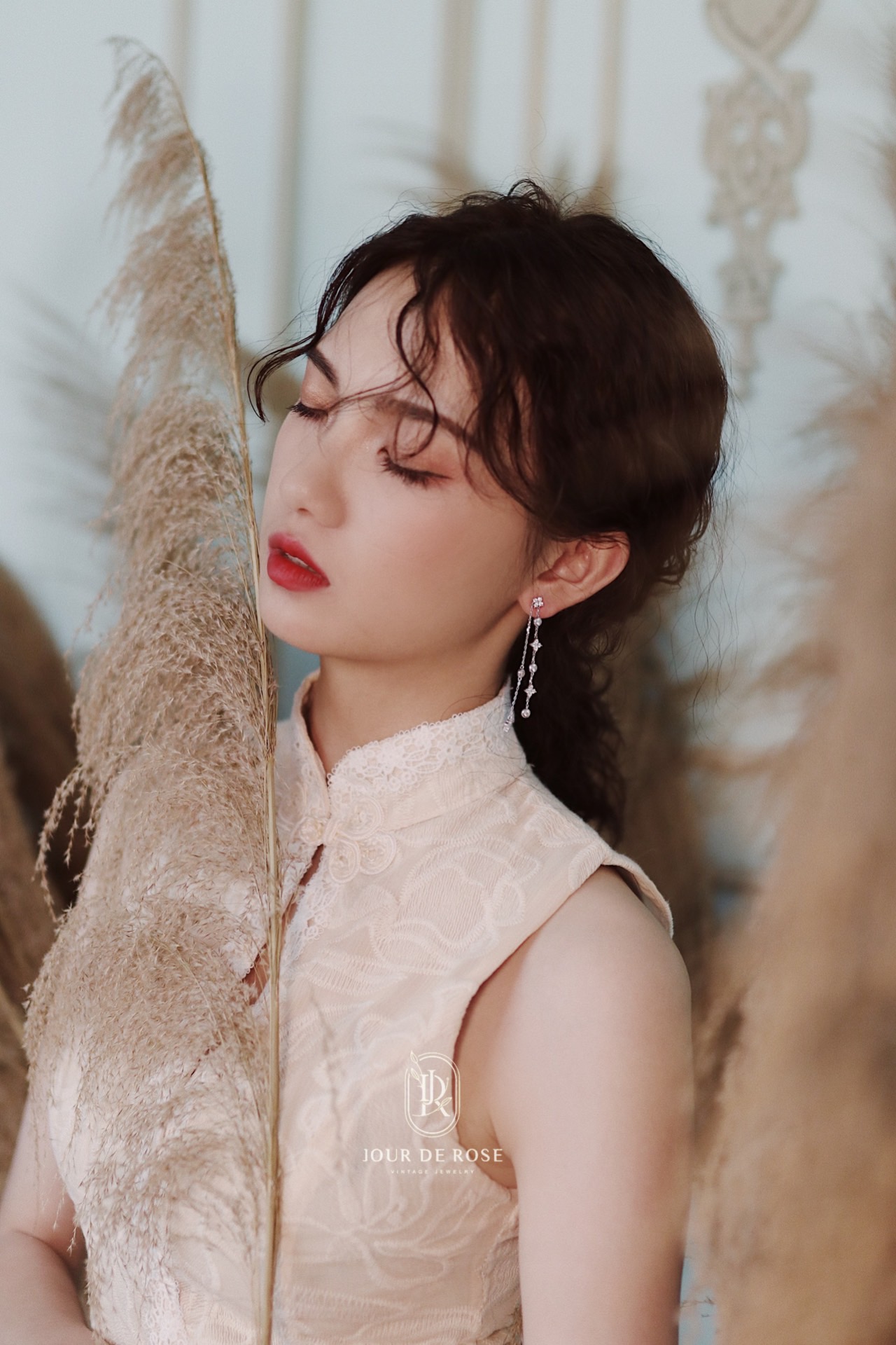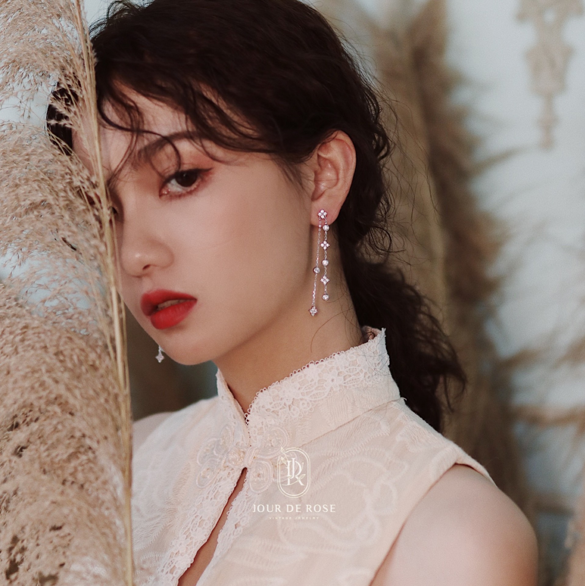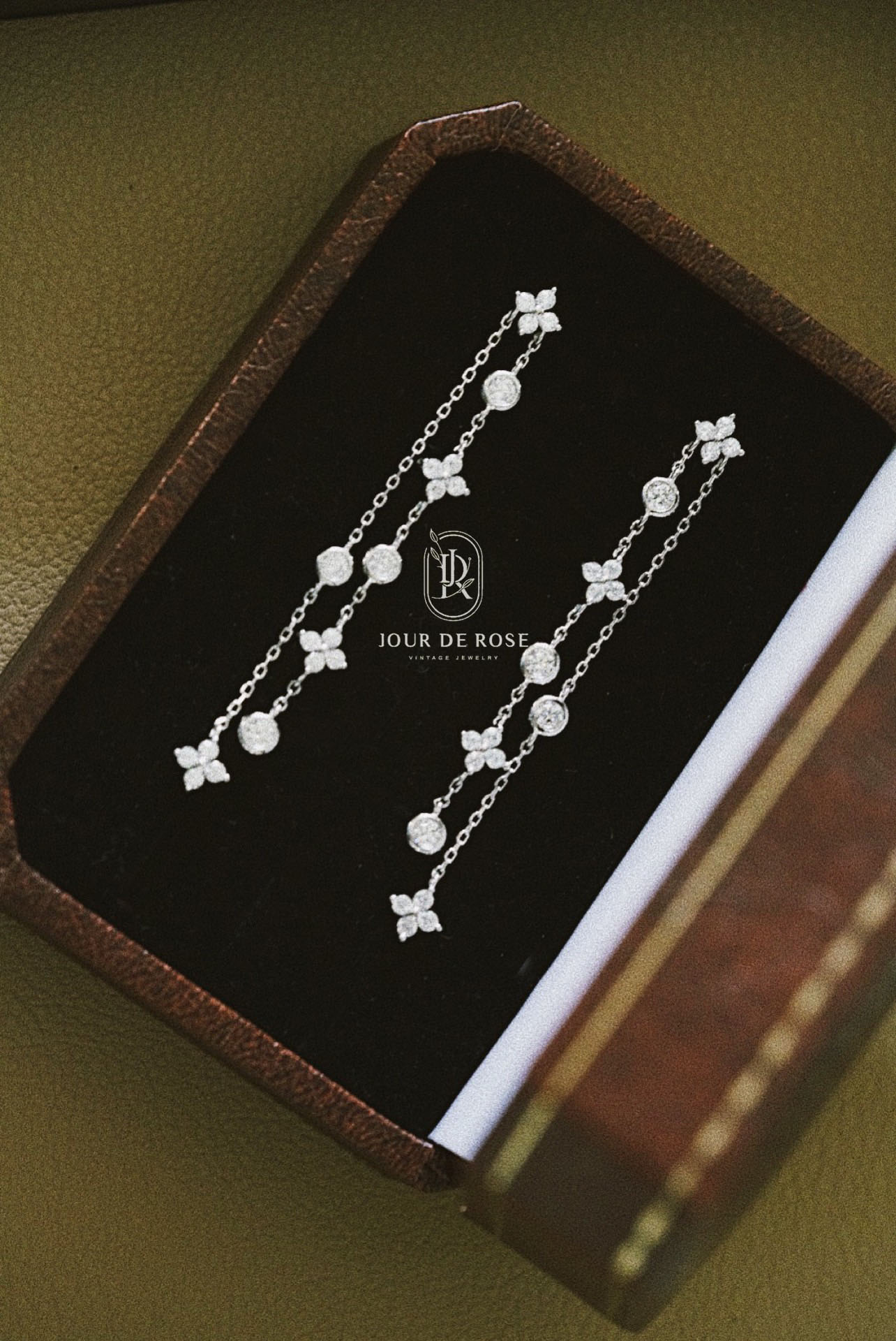 "Fourteen Lines" original design Earrings Vintage banquet jewelry Stud earrings Earrings appear thin 925 silver