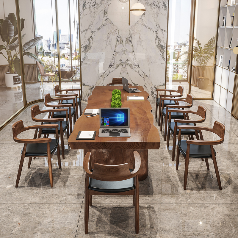 Large board solid wood conference table Chinese large long table tea table high-end large board conference new Chinese log long board table