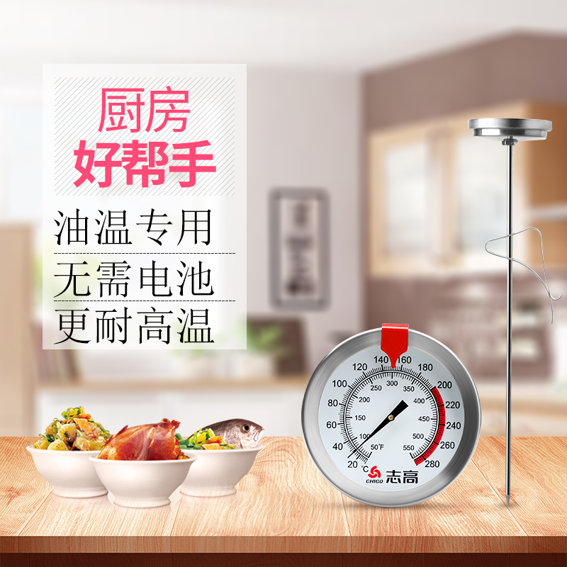 Zhigao Oil Fried Commercial Probe Type Baking Thermometer Oil Temperature Gauge Kitchen High Temperature High-precision Oil Temperature Meter