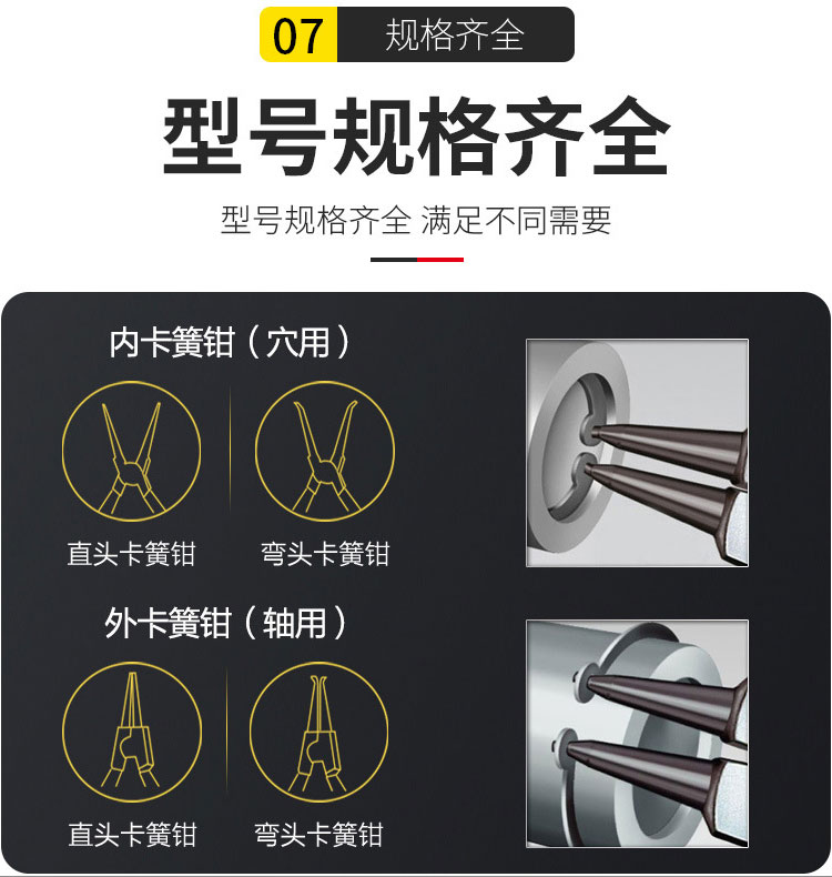 Circlip pliers inner caliper outer caliper yellow pliers circlip pliers C-type buckle pliers 5 inch 7 inch 9 inch 13 inch spring pliers inner bend
