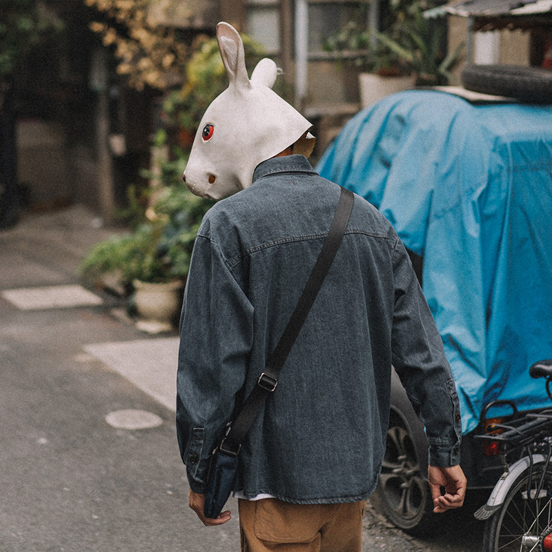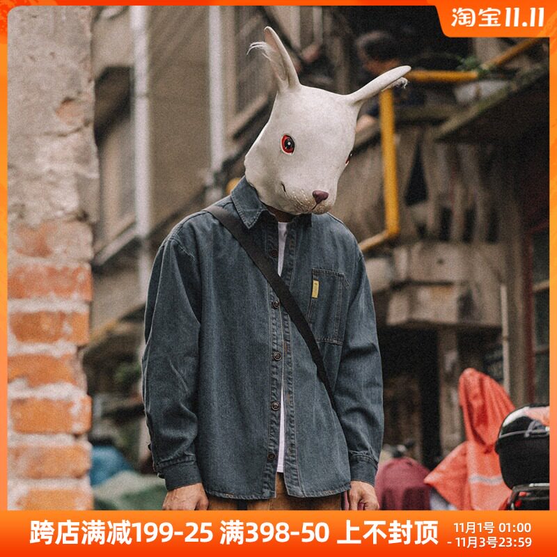 Rabbit Xiansen men's American tooling denim shirt men's long sleeve casual shirt spring and autumn retro trend men's coat